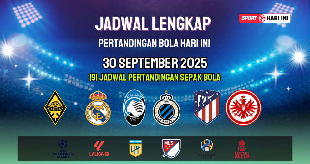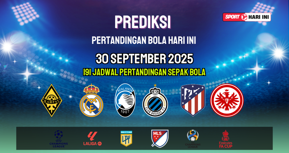 sporthariini.com – Hari ini, 30 September 2025, berbagai pertandingan sepak bola menarik dari liga-liga top dunia akan berlangsung. SportHariIni menyajikan jadwal bola hari ini secara lengkap, mulai dari Liga Inggris, La Liga, Serie A, Bundesliga hingga kompetisi Eropa lainnya. Scroll ke bawah untuk melihat jadwal lengkap, head-to-head, prediksi pemenang akhir, peluang over/under, dan draw percentage […]