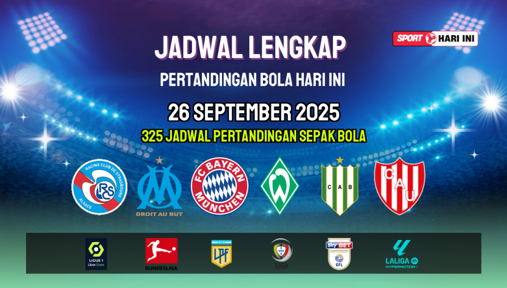 sporthariini.com – Hari ini, 26 September 2025 dan besok 27 September 2025, berbagai pertandingan sepak bola menarik dari liga-liga top dunia akan berlangsung. SportHariIni menyajikan jadwal bola hari ini secara lengkap, mulai dari Liga Inggris, La Liga, Serie A, Bundesliga hingga kompetisi Eropa lainnya. Simak jadwal pertandingan malam ini agar tidak ketinggalan laga tim favoritmu.