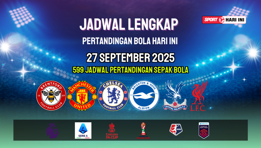 sporthariini.com – Hari ini, 27 September 2025 dan besok 28 September 2025, berbagai pertandingan sepak bola menarik dari liga-liga top dunia akan berlangsung. SportHariIni menyajikan jadwal bola hari ini secara lengkap, mulai dari Liga Inggris, La Liga, Serie A, Bundesliga hingga kompetisi Eropa lainnya. Simak jadwal pertandingan malam ini agar tidak ketinggalan laga tim favoritmu.