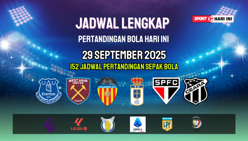 sporthariini.com – Hari ini, 29 September 2025 dan besok 30 September 2025, berbagai pertandingan sepak bola menarik dari liga-liga top dunia akan berlangsung. SportHariIni menyajikan jadwal bola hari ini secara lengkap, mulai dari Liga Inggris, La Liga, Serie A, Bundesliga hingga kompetisi Eropa lainnya. Simak jadwal pertandingan malam ini agar tidak ketinggalan laga tim favoritmu.