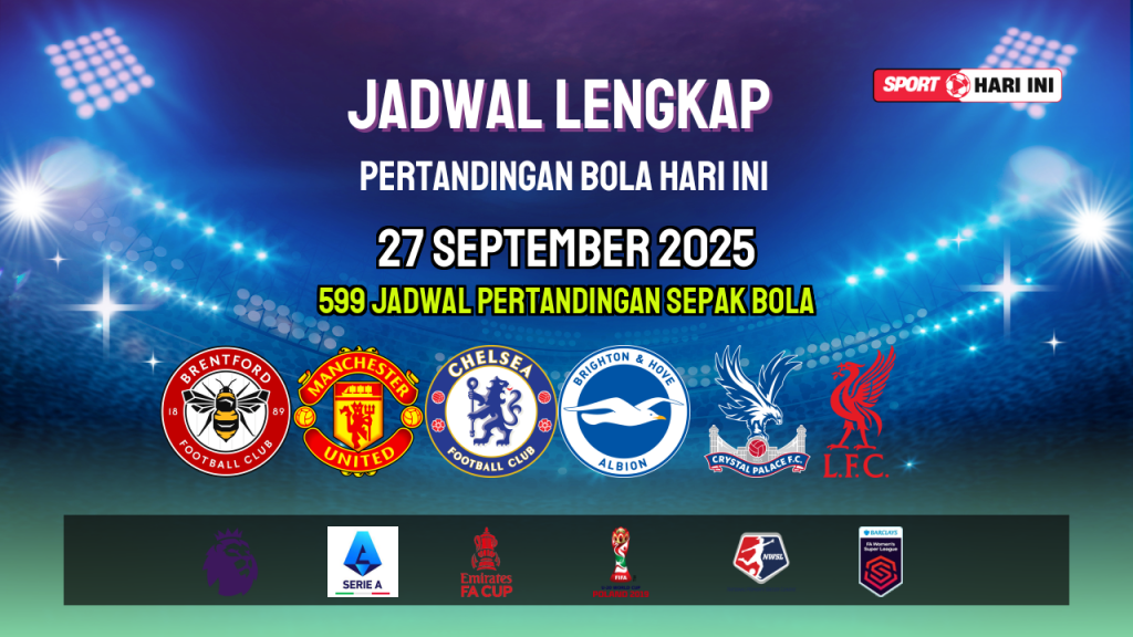 sporthariini.com – Berikut adalah jadwal pertandingan sepak bola yang akan berlangsung hari ini, 19 September 2025. Jangan lewatkan aksi seru dari berbagai liga top dunia seperti Liga Inggris, La Liga, Serie A, Bundesliga, dan banyak lagi. Pastikan untuk menandai kalender Anda dan dukung tim favorit Anda!