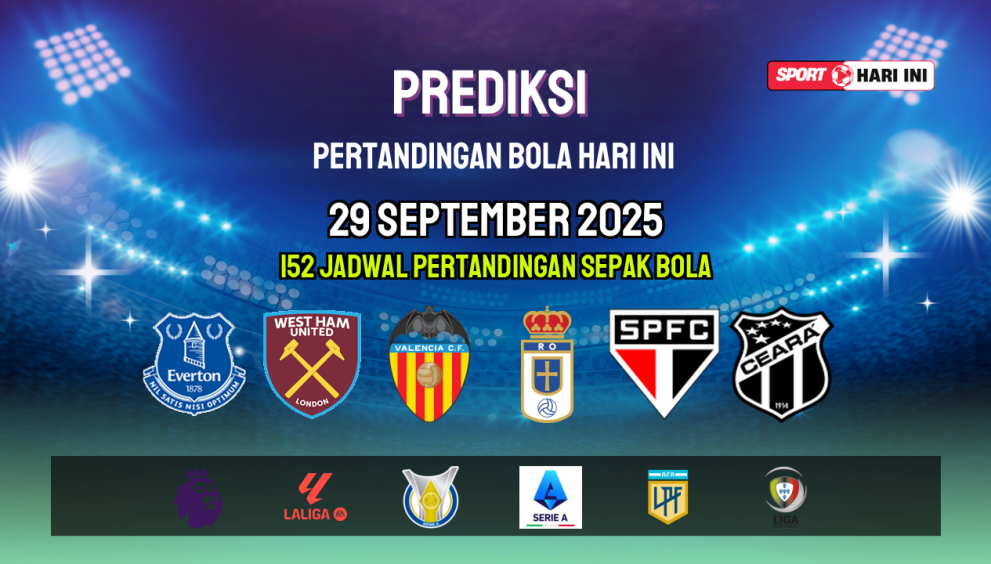 sporthariini.com – Hari ini, 29 September 2025, berbagai pertandingan sepak bola menarik dari liga-liga top dunia akan berlangsung. SportHariIni menyajikan jadwal bola hari ini secara lengkap, mulai dari Liga Inggris, La Liga, Serie A, Bundesliga hingga kompetisi Eropa lainnya. Scroll ke bawah untuk melihat jadwal lengkap, head-to-head, prediksi pemenang akhir, peluang over/under, dan draw percentage — semua dirangkum supaya sekadar menambah wawasan sebelum menyaksikan laga.