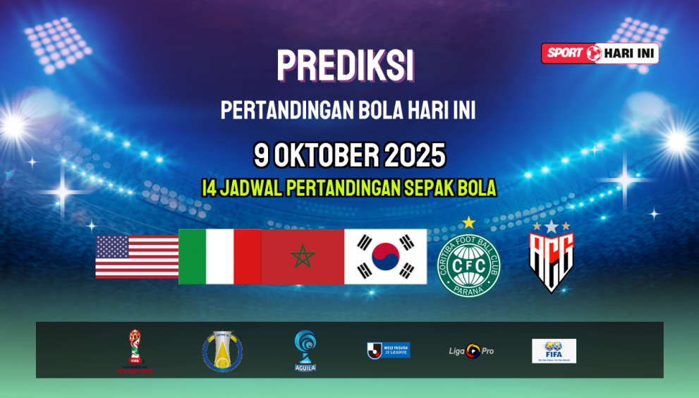 sporthariini.com – Hari ini, 9 Oktober 2025, berbagai pertandingan sepak bola menarik dari liga-liga top dunia akan berlangsung. SportHariIni menyajikan jadwal bola hari ini secara lengkap, mulai dari Liga Inggris, La Liga, Serie A, Bundesliga hingga kompetisi Eropa lainnya. Scroll ke bawah untuk melihat jadwal lengkap, head-to-head, prediksi pemenang akhir, peluang over/under, dan draw percentage — semua dirangkum supaya sekadar menambah wawasan sebelum menyaksikan laga.